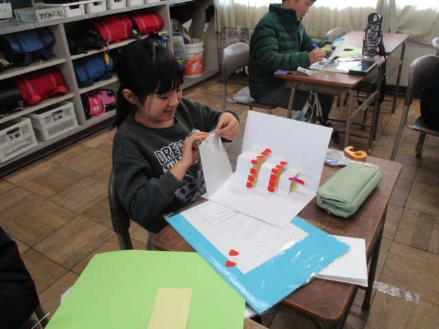 1月8日 4年 飛び出すカードをつくろう