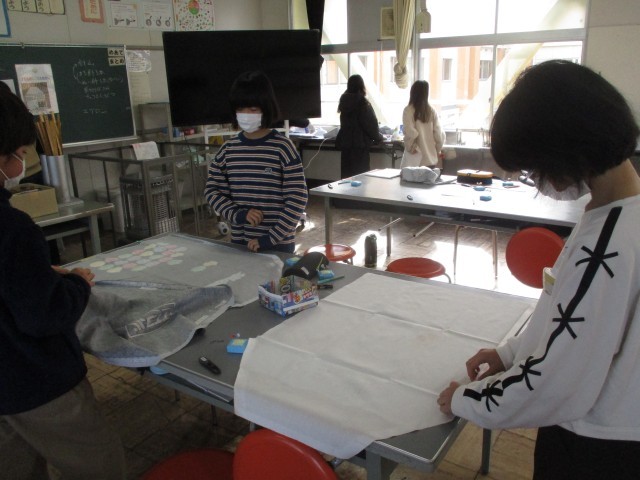 家庭科ではエプロンづくりに取り組んでいます。