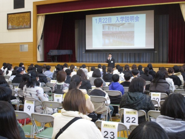 午後から葉栗中学校で入学説明会がありました。