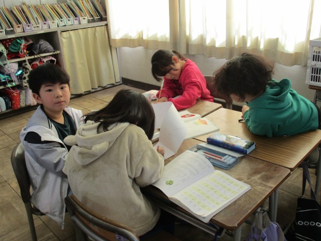 国語の単元「ことばあそびをつくろう」で、グループでことばあそびをしました。分担したり、みんなで考えたりと楽しそうに活動していました。