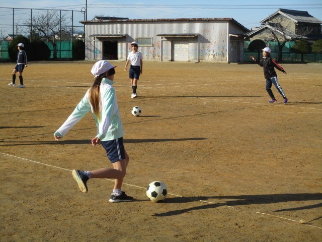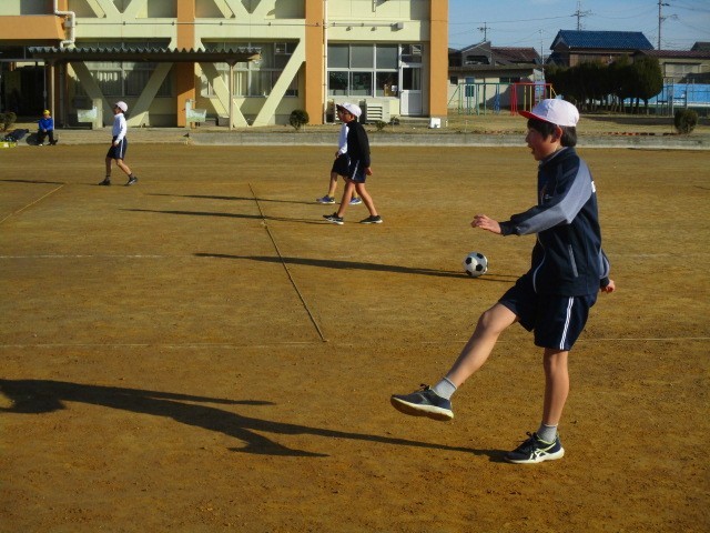 相手に向かってまっすぐボールを蹴ることができるよう練習に励んでいます。