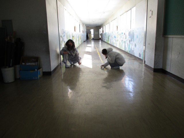 家庭科の時間に、お世話になった学校をきれいにしようと、そうじをしました。卒業まで、自分たちでできることは何か考えています。