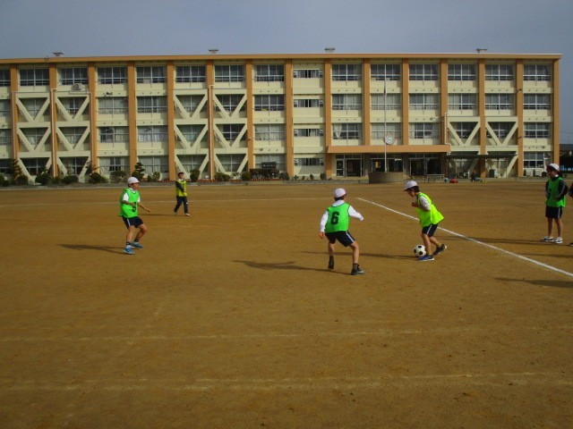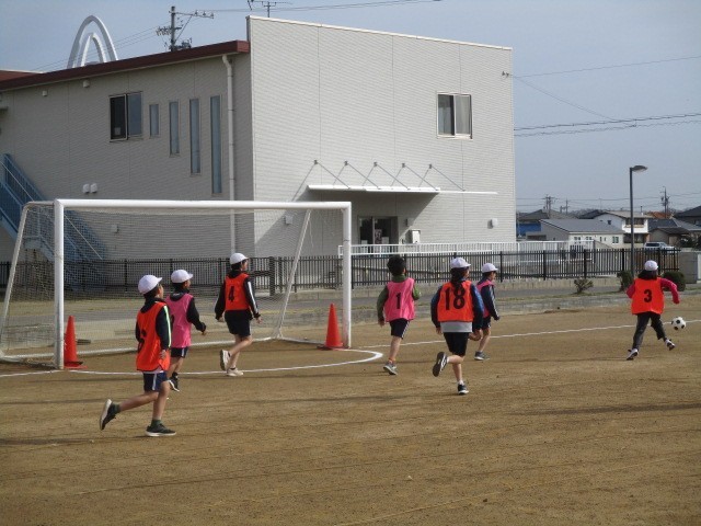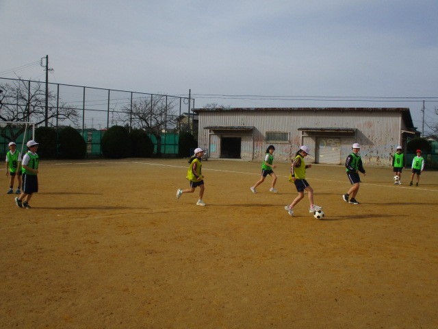 オフェンスとディフェンスに分かれてパスをつなぐ練習をしています。