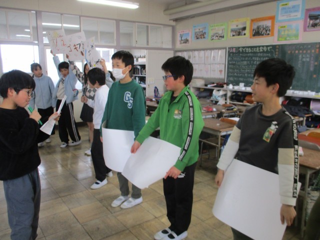 どちらの学年も、6年生を送る会の練習・準備をしていました。