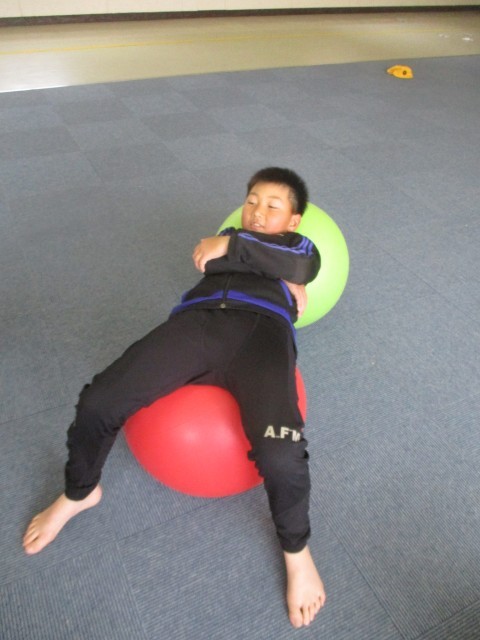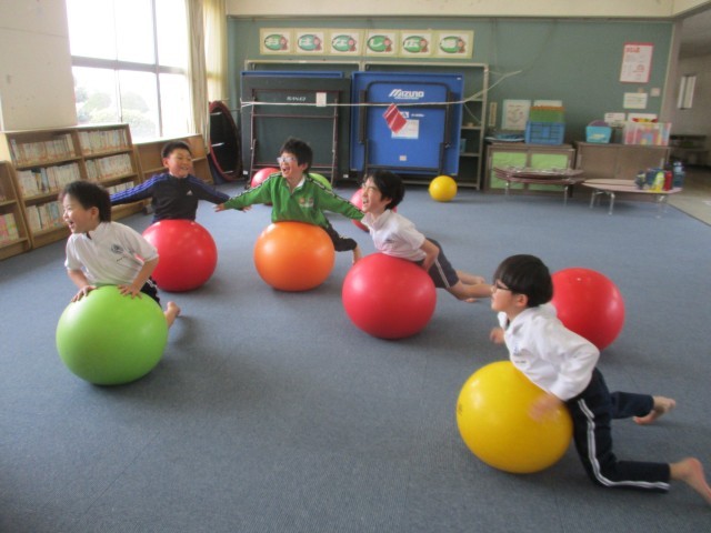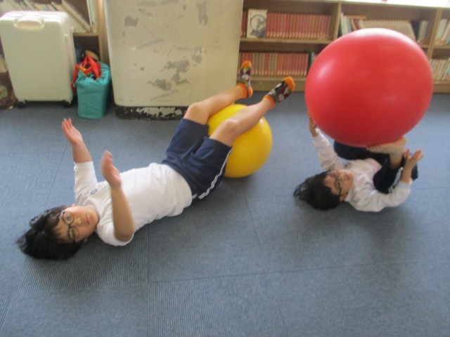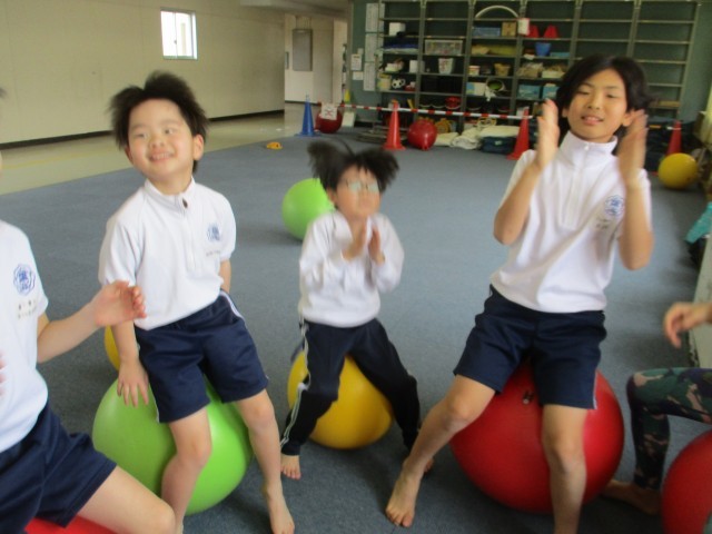 今日はバランスボールの先生と運動しました。楽しく体を動かすことができました。