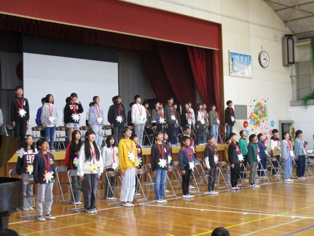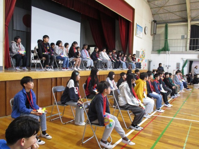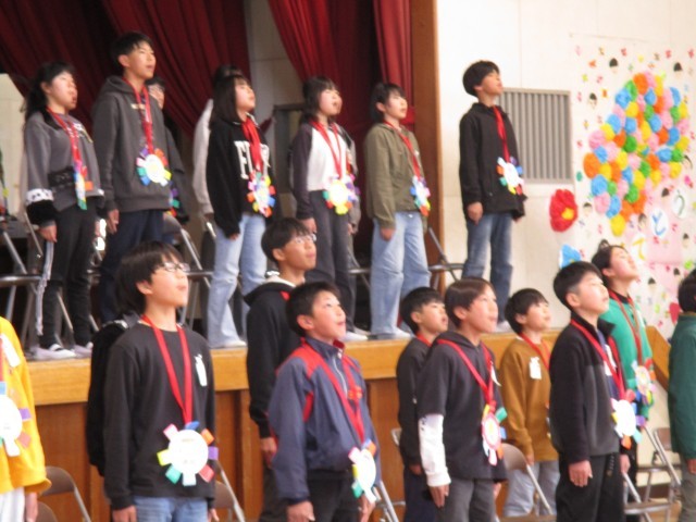みんなから、心のこもったプレゼントを届けてもらいました。笑ったり、泣いたりと本当に楽しい時間でした。6年生からは「ふるさと」の歌をお返しに歌いました。