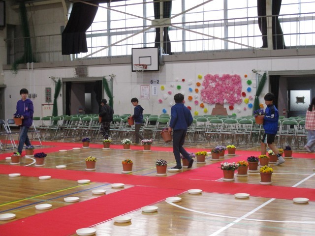 5時間目に、4,5年生で卒業式の準備を行いました。6年生に清々しい気持ちで卒業式を迎えてもらうよう、隅々まできれいにしました。