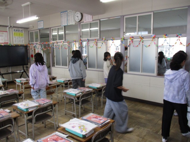 今日は、明日行われる入学式の準備をしました。新しく入学する新1年生のために、思いを込めて活動しました。