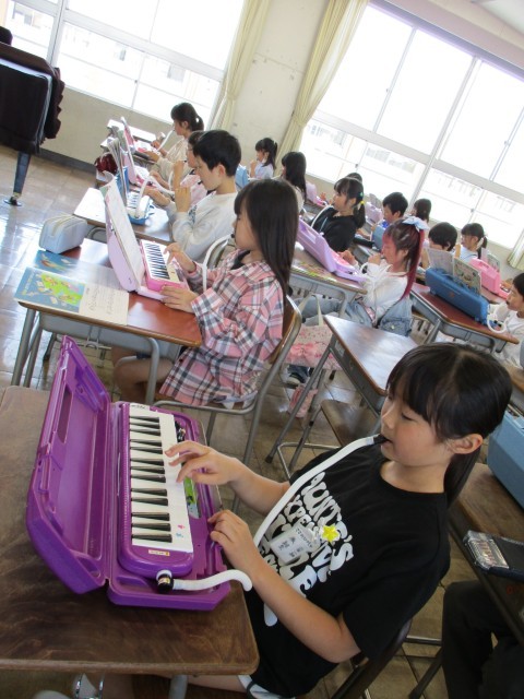「ちいさな世界」の元気な歌が聞こえてきました。鍵盤も姿勢を良くして演奏しています。
