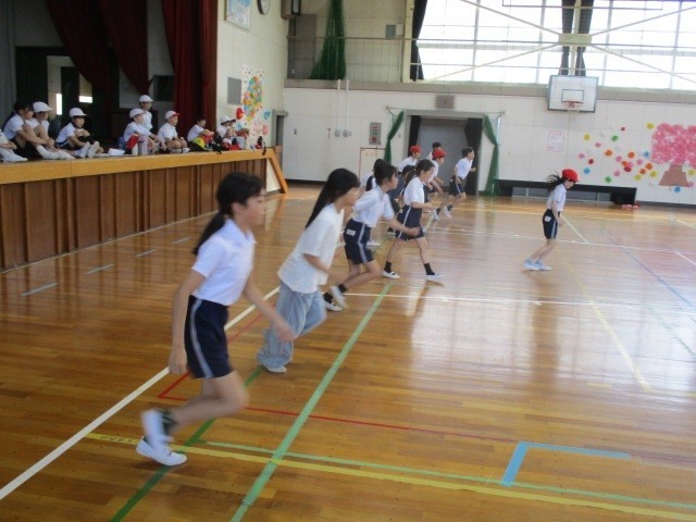 屋内運動場で「シャトルラン」の練習をしました。どんな記録が出たでしょうか?