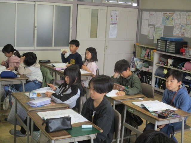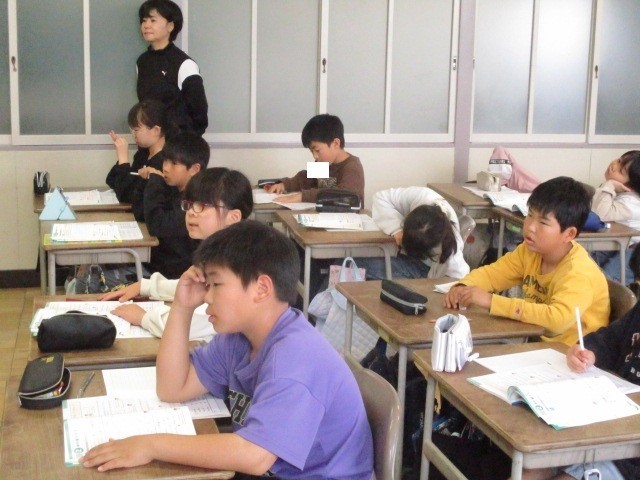 「折れ線グラフ」の学習です。折れ線グラフがどのようなものか、先生から説明を受けました。