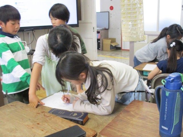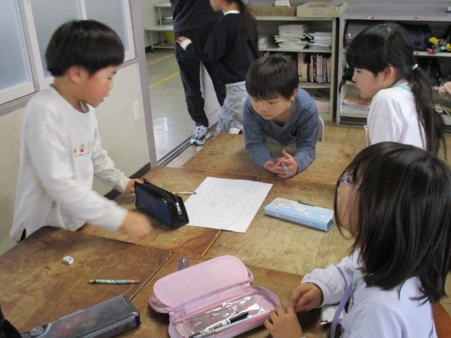 今日は雨。外で体育を行う予定でしたが、中止になりました。そのため、教室で学活。グループで協力して行うゲームを行いました。