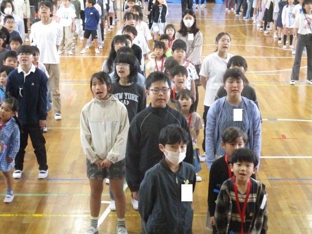 1時間目に、全校で「1年生をむかえる会」を行いました。代表委員会の人が考えてくれた「葉栗北小クイズ」など1年生が楽しめる内容で、温かい素敵な時間を過ごすことができました。最後に全校で校歌を歌いました。1年生の中でも、大きな声で歌うことができている子もいました。素晴らしいですね。