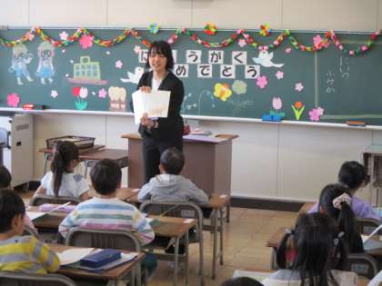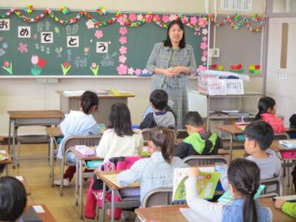 1年1・2組の様子です。入学して2日目。みんなそろって元気いっぱいです。