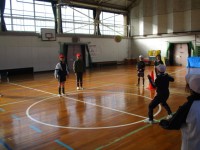 見本を見せてもらってから、人形を動かす担当、太鼓の担当に分かれて、実際に演じる練習をしました。
