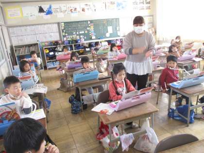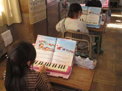 音楽で「ひのまる」を練習しています。音階を一つ一つ確認しながらひいています。早く最後までひけるといいですね。