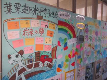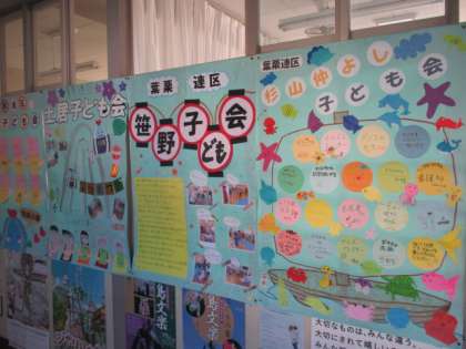 先日の葉栗文化祭で掲示されてあった子ども会の壁新聞が職員室廊下に貼ってあります。力作ばかりです。ぜひ見に来てくださいね。