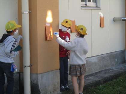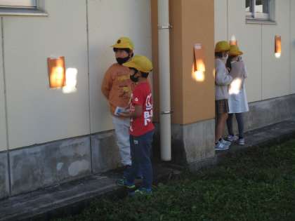 鏡で跳ね返した日光を重ねると、明るさや温かさはどうのようになるのか実験しました。