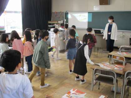 4月19日 1年 おんがくにあわせてあるこう