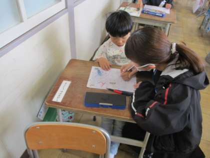 ひらがなの勉強を始めています。きれいな字が書けるよう丁寧に指導をしています。