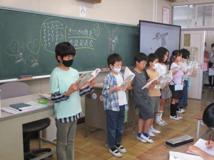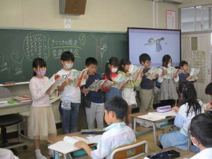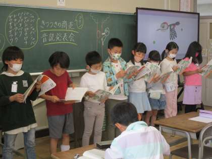音読発表会を行いました。緊張した様子も見られましたが、頑張って読めました。