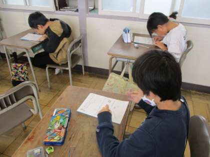 今日は自分で分度器を使って、角度を測ったり、決められた角度をかく練習をしています。