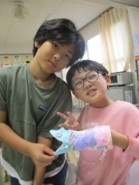 みんなが作ったクリスマスリースと、色塗りをしたクリスマスツリーの絵で、教室はクリスマスの気分でした。サンタさんからのプレゼントが楽しみですね。
