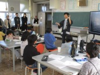 作品を持ち帰るための袋を配りました。その袋に子どもたちは思い思いに絵を描いています。