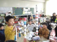 家から材料を持ってきておもちゃ作りをしました。きょうは他の人に自分の作ったおもち...