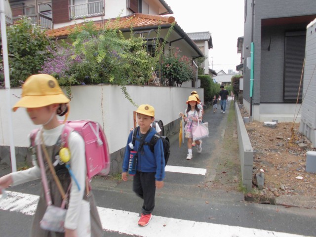 班長さんは、時々振り返っては自分の班の低学年の子を気遣っていました。