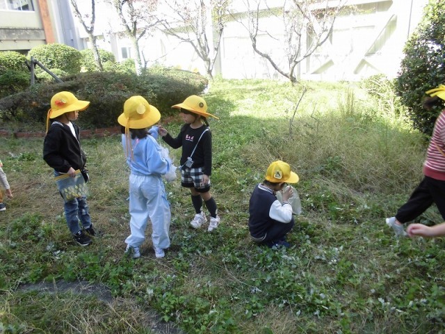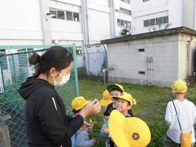きれいに色づいた葉っぱなどを見つけ、嬉しそうに見せてくれました。