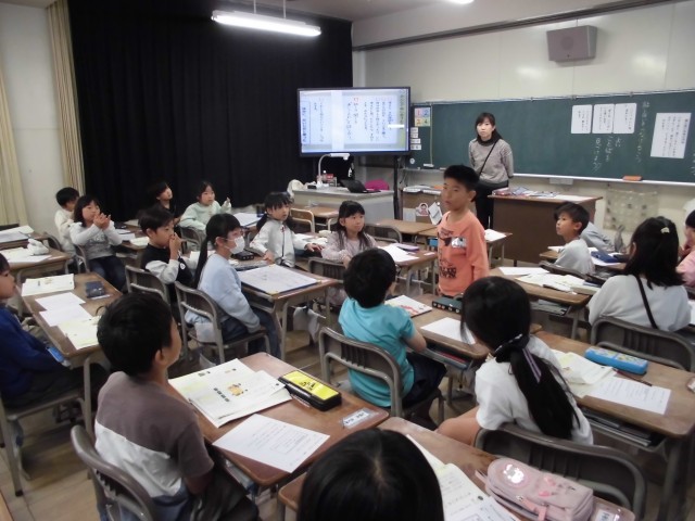 2年生国語では、その取組の一つとして「みんなで話をつなげる」学習をしています。