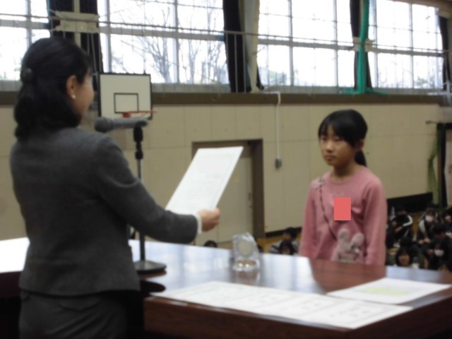 今日は、二つのコンクールで受賞したみなさんを表彰しました。