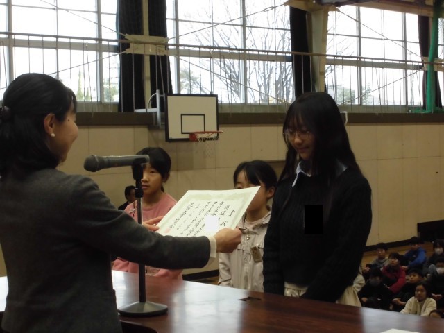 二つ目は「書写作品コンクール」の特選受賞です。3学期には、特選の作品が、巡回展として市内の小中学校で順番に展示されます。