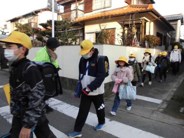 毎朝寒い中、見守り隊の方々が児童のみなさんの安全を見守ってくださっています。