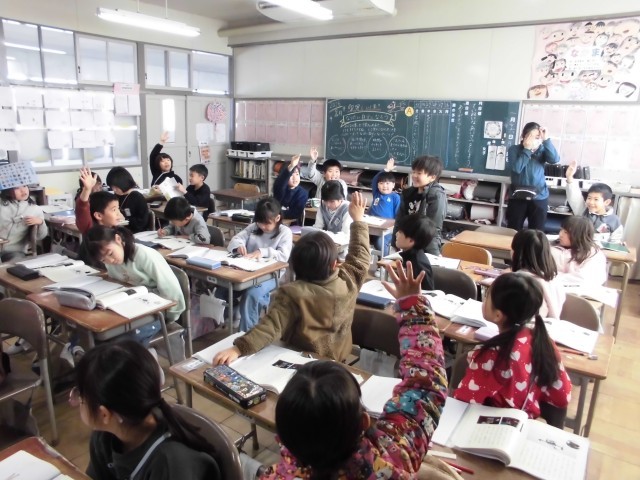 今週も2年生は寒さに負けず、たくさんのことを学習しています。体育の時間には、ボール蹴りゲームにチャレンジしています。算数では、1mものさしを使って、身の回りからおよそ1mのものさがしをしました。窓の高さ、床からドアの取っ手の高さなどたくさん見つけました。明日は学校公開日です。ご参観をおまちしています。