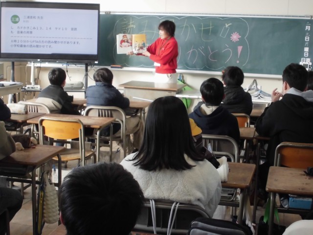 今日は一年最後の読み聞かせをしていただきました。