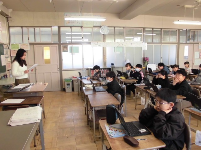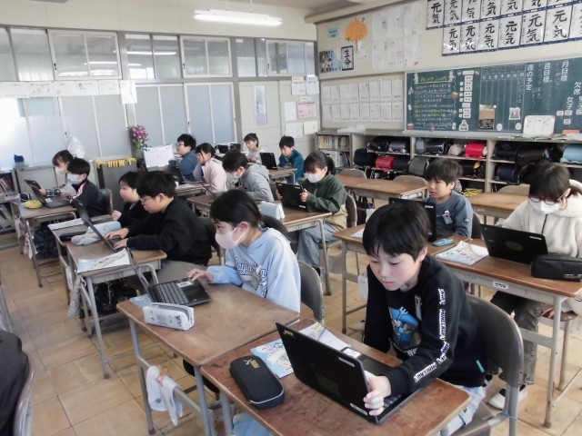 今日は、「英語にチャレンジ!」として、クロームブックを利用した英語の聞き取り検査を行いました。ALTの先生が話した英語を聞き取り、子どもたちは選択肢から選んで答えました。単語の発音や英文の意味を考えながら、普段の英語の授業で学んだことをしっかりと答えることができていました。これからも英語に親しみ、楽しく学んでいきましょう。