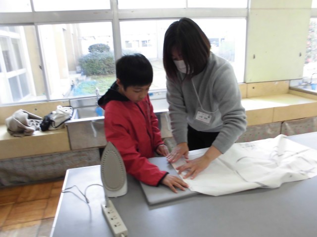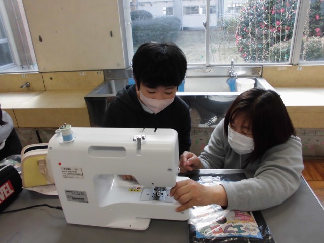 5年生の家庭科でエプロンづくりをしています。