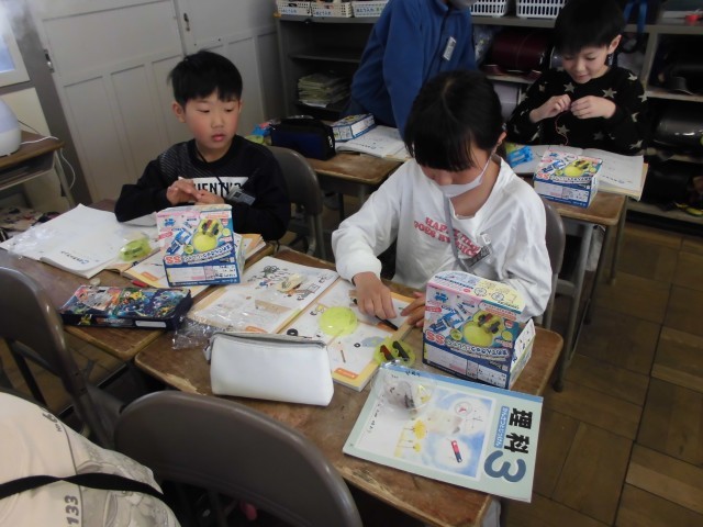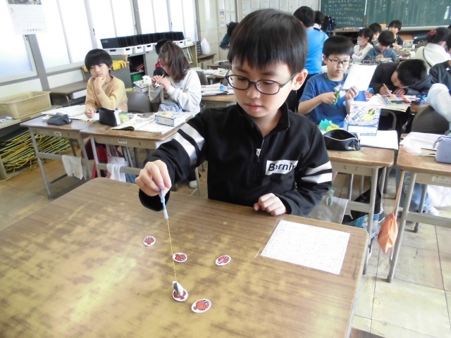 理科の授業で、これまでの学習を生かしておもちゃを作る活動に取り組みました。以前使った実験道具を使って、子ども達はいろいろ考え工夫しながらおもちゃを作っていました。作り終わったら、どの子も楽しそうに遊んでいました。この活動で3年生の理科の授業は終わりました。4年生の理科の学習でいろいろな体験を通して新たな驚き、新たな発見をしてほしいと思います。