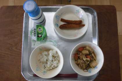 今日は「愛知を食べる学校給食の日」で、地元産の食材が多く使われていました。午後から気温が下がってきたので、すきやきに似た煮物「ひきずり」が温かく、おいしかったです。プリンもお茶の風味がしっかりと感じられました。