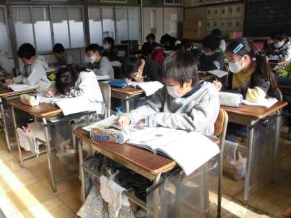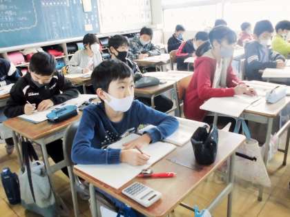 算数の授業で、人口密度を求める練習を行いました。これまでに学習した「単位量」の考え方がさまざまなことに応用できることを体験しました。明日からは、来週のテストにむけて練習問題を解く予定です。