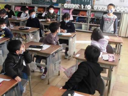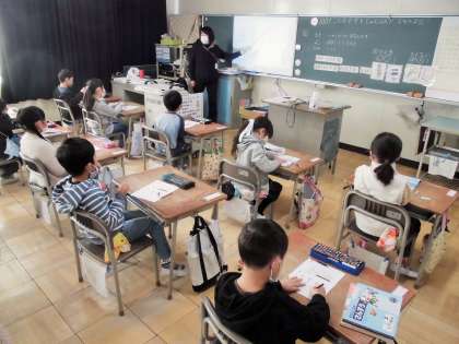 今日の算数は、「100をこえる数」の学習をしました。ただ答えを言うだけでなく、その答えになるわけも話すことができました。みんな、自分の言葉で発表しようと頑張っています。