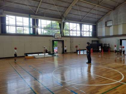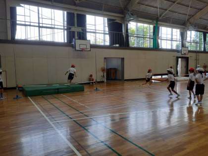 体育では、「高跳び」をしています。初めに、跳びやすい助走の練習をしました。その後、バーを使って、高さに挑戦しました。みんな65センチの高さをクリアしました。今後、もっと高い高さに挑戦していきます。
