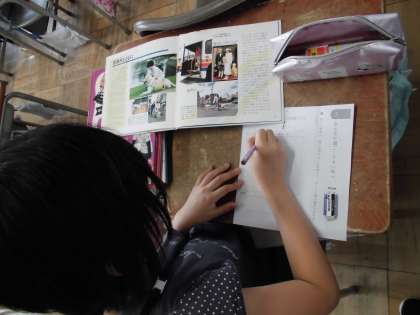 報告書を書くために、調べ方を選んで引用する文を調べ始めました。本や資料から調べたり、インターネットから調べたり、自分たちで考えて活動することができました。