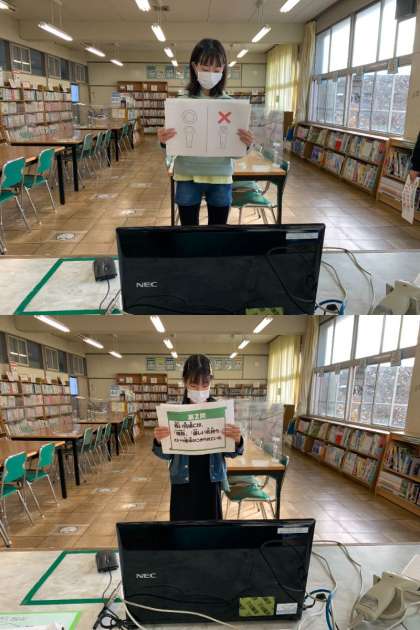 明日から始まる「赤い羽根共同募金」の呼びかけを行いました。いつ始まったのか、どんな目的で募金をしているのか劇やクイズをまじえて児童会役員が説明をしました。