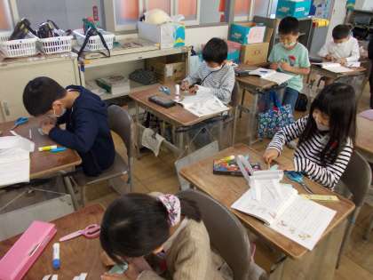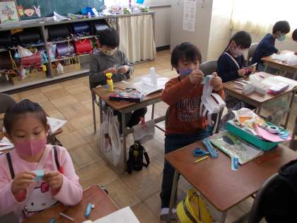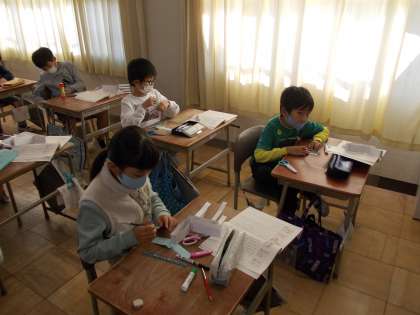 国語は、馬のおもちゃが完成しました。子ども達が説明の中で大切だと感じたのは、長さや数、むき、部品の名称を説明の中できちんと示すことでした。また、おもちゃ作りで困ったところを聞いたところ、馬の足を作るときの説明が難しくて困ったと感じた子が多かったです。そこで、教科書の説明をもっと分かりやすくするために、どうしたらよいかをみんなで考えました。注意することを書いたり、絵に言葉を書いたり、写真を大きくしたり、できなかったときのことを書いたりなど、いい意見がたくさん出ました。これから自分の説明書を書くときに、学んだことを生かして書いていきたいと思います。
