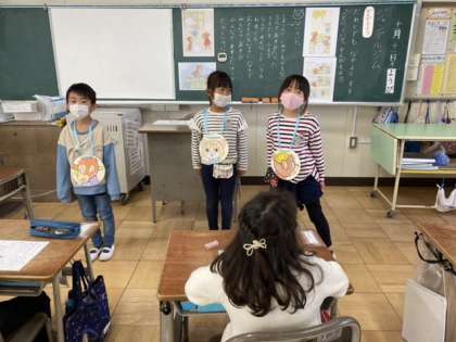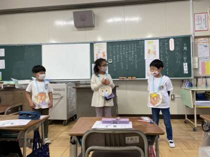 今日の道徳では、ジャングルジムというお話から、誰とでも仲良くすることについて考えました。登場人物の3人のセリフや気持ちを想像しながら、実際に演じてみて考えていきました。振り返りでは、「みんなで遊ぶと楽しい。」「もし悪いことをしてしまったら、すぐに謝るといい。」と言っていました。
