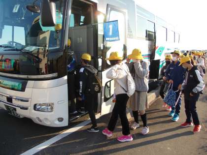 肌寒さはありましたが、雲一つない爽やかな秋晴れの下、6年生が元気に修学旅行に出発しました。