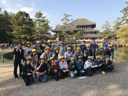 東大寺で学級写真を撮りました。みんな笑顔でいっぱいです。